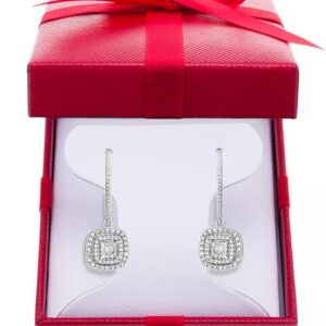 Diamond Halo Drop Earrings (1/2 ct. t.w.) in Sterling Silver, 14k Rose Gold Sterling Silver & 16k Gold Sterling Silver.